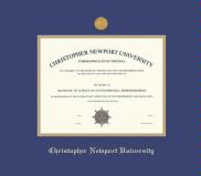 Christopher Newport University Diploma (1995 to Present) Frame with Medallion and Royal Blue and Gold Double Mat and Gold Embossing(Approximate frame size 17 x 19 inches)