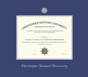 Christopher Newport University Diploma (1995 to Present) Frame with Medallion, Royal Blue and Silver Double Mat, and Silver Embossing(Approximate frame size 17 x 19 inches)