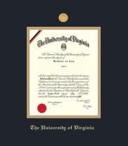 University of Virginia Diploma Frame with Medallion and Black and Gold Double Mat and Gold Embossing(Approximate frame size 23 x 26 inches)