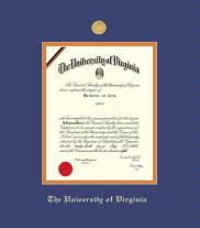 University of Virginia Diploma Frame with Medallion and Royal Blue and Orange Double Mat and Gold Embossing(Approximate frame size 23 x 26 inches)