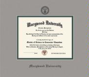 Marywood University Diploma - BA/MA Frame with Paloma and Green Double Mat and Black Embossing(Approximate frame size 17 x 19 inches)