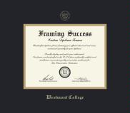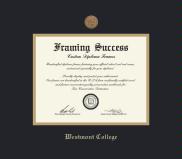 Westmont College Diploma Frame with Medallion and Black and Gold Double Mat and Gold Embossing(Approximate frame size 15 x 17 inches)