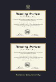 Louisiana Tech University Double Diploma Frame with Black and Gold Double Mat and Gold Embossing(Approximate frame size 27 x 19 inches)