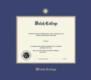 Walsh College Diploma - BA (2000 to Present) Frame with Medallion and Royal Blue and Gold Double Mat and Gold Embossing(Approximate frame size 17 x 19 inches)