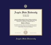 Angelo State University Diploma (12/14 to Present) Frame with Navy Blue and Gold Double Mat and Gold Embossing(Approximate frame size 19 x 22 inches)