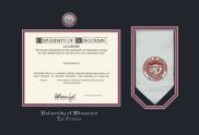 University of Wisconsin- La Crosse Diploma Frame with Colored Medallion and Stole Cut-out and Black and Maroon Double Mat and Silver Embossing(Approximate frame size 25 x 17 inches)