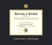 University of Portland Diploma - Doctorate (10/16 to Present) Frame with Medallion and Black and Gold Double Mat and Gold Embossing(Approximate frame size 19 x 22 inches)