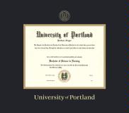 University of Portland Diploma - BA/MA (10/16 to Present) Frame with Medallion and Black and Gold Double Mat and Gold Embossing(Approximate frame size 17 x 19 inches)