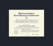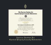 Chartered Property Casualty Underwriters Certificate-Embossed Mat Frame with Black Mat and Gold Embossing(Approximate frame size 19 x 22 inches)