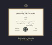 University of Colorado- Colorado Springs Diploma (7/17 to Present) Frame with Black and Gold Double Mat and Gold Embossing(Approximate frame size 15 x 17 inches)