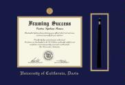 University of California Davis Diploma - BA/MA/PhD Frame with Medallion and Tassel Cut-out and Navy Blue and Gold Double Mat and Gold Embossing(Approximate frame size 17 x 23 inches)