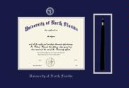 University of North Florida Diploma - BA (2020 to Present) Frame with Medallion and Tassel Cut-out and Navy Blue and Silver Double Mat and Silver Embossing(Approximate frame size 17 x 23 inches)