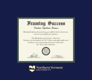 Northern Vermont University at Lyndon Diploma Frame with Navy Blue and Green Double Mat and Gold Embossing(Approximate frame size 17 x 19 inches)