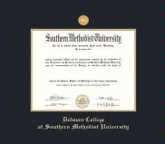 Southern Methodist University Diploma - MA & (12/25-Pres) BA Cox Business Frame with Medallion and Black and Gold Double Mat and Gold Embossing(Approximate frame size 19 x 22 inches)