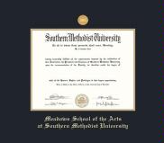 Southern Methodist University Diploma - BA Meadows Art School (Pre 12/25) Frame with Medallion and Black and Gold Double Mat and Gold Embossing(Approximate frame size 17 x 19 inches)