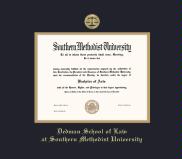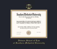 Southern Methodist University Diploma - Dedman Law Frame with Scales of Justice Medallion and Black and Gold Double Mat and Gold Embossing(Approximate frame size 19 x 22 inches)