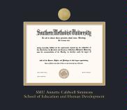 Southern Methodist University Diploma - MA/PhD & (12/25-Pres) BA School of Education and Human Development Frame with Medallion and Black and Gold Double Mat and Gold Embossing(Approximate frame size 19 x 22 inches)