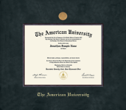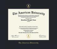 American University Diploma - BA/MA/PhD (7/09 to Present) Frame with Dark Black Mat and Gold Embossing(Approximate frame size 17 x 19)