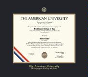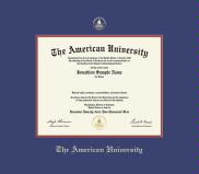 American University Diploma - BA/MA/PhD (7/09 to Present) Frame with Royal Blue and Red Double Mat and Gold Embossing(Approximate frame size 19 x 22 inches)