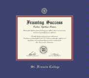 St. Francis College Diploma Frame with Royal Blue and Red Double Mat and Gold Embossing(Approximate frame size 17 x 19 inches)