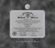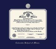 Colorado School of Mines Diploma - BA Metal Frame with Medallion and Navy Blue and Gray Double Mat and Silver Embossing(Approximate frame size 14 x 16 inches)