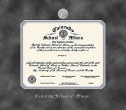 Colorado School of Mines Diploma - BA Metal Frame with Medallion and Grey Suede and Silver Double Mat and Silver Embossing(Approximate frame size 14 x 16 inches)