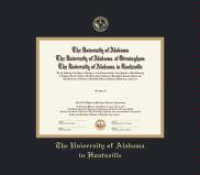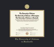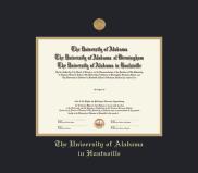 University of Alabama- Huntsville Diploma - MA Frame with Medallion and Black and Gold Double Mat and Gold Embossing(Approximate frame size 17 x 19 inches)