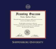 Shippensburg University Diploma - MA/Doc (12/07 to Present) Frame with Medallion and Navy Blue and Red Double Mat and Gold Embossing(Approximate frame size 19 x 22 inches)
