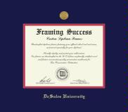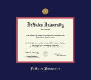 DeSales University Diploma Frame with Medallion and Navy Blue and Red Double Mat and Gold Embossing(Approximate frame size 17 x 19 inches)