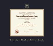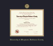 University of Maryland- Baltimore County Diploma (5/19 to Present) Frame with Colored Medallion and Black and Gold Double Mat and Gold Embossing(Approximate frame size 19 x 22 inches)