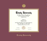 Trinity University Diploma Frame with Maroon and Gold Double Mat and Gold Embossing(Approximate frame size 17 x 19 inches)