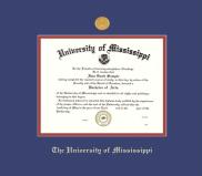 University of Mississippi Diploma - BA/MA/PhD Frame with Royal Blue and Red Double Mat and Gold Embossing(Approximate frame size 17 x 19 inches)