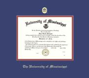University of Mississippi Diploma - BA/MA/PhD Frame with Medallion and Royal Blue and Red Double Mat and Gold Embossing(Approximate frame size 17 x 19 inches)