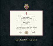 Brown University Diploma Frame with Colored Medallion and Black Suede and Wood Fillet Double Mat and Gold Embossing(Approximate frame size 19 x 22 inches)