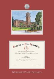 For a single diploma. Frame includes a lithograph print of a campus landmark