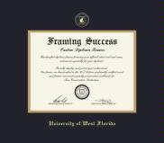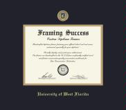 University of West Florida Diploma (7/18 to Present) Frame with Medallion and Black and Gold Double Mat and Gold Embossing(Approximate frame size 17 x 19 inches)