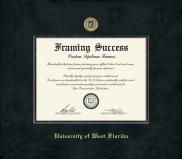 University of West Florida Diploma (7/18 to Present) Frame with Medallion and Black Suede and Wood Fillet Double Mat and Gold Embossing(Approximate frame size 17 x 19 inches)