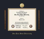San Jose State University Diploma Frame with Gold Medallion and Royal Blue and Gold Double Mat and Gold Embossing(Approximate frame size 17 x 19 inches)