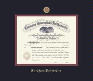 Fordham University Diploma - BA/MA Frame with Medallion and Black and Maroon Double Mat and Gold Embossing(Approximate frame size 19 x 22 inches)