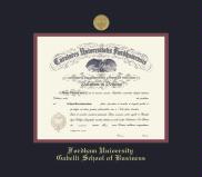 Fordham University Diploma - Business Frame with Medallion and Black and Maroon Double Mat and Gold Embossing(Approximate frame size 19 x 22 inches)