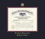 Fordham University Diploma - Law Frame with Medallion and Black and Maroon Double Mat and Gold Embossing(Approximate frame size 21 x 24 inches)