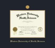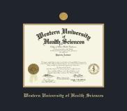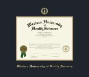 Western University of Health Sciences Diploma - Doctoral (12x15) with Medallion Frame Featuring a Black and Gold Double Mat with Gold Embossing(Approximate frame size 19 x 22 inches)