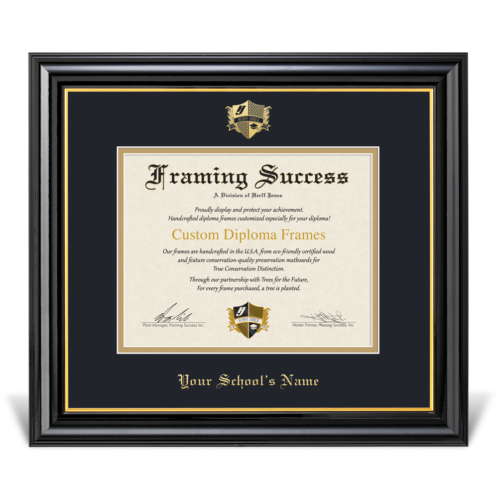 Description: Lustrous high-gloss black finish with a gold inner bevel.