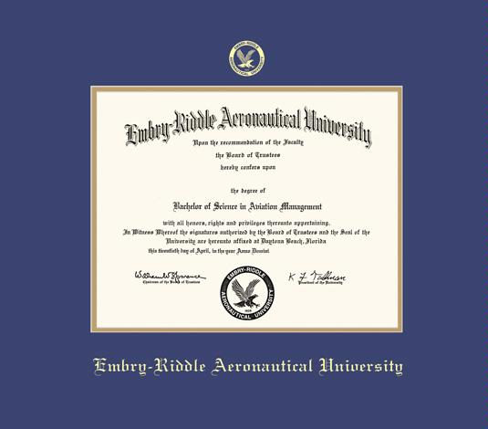 Embry-Riddle Aeronautical University Diploma Frame (Pre 8/12) with Royal Blue and Gold Double Mat and Gold Embossing