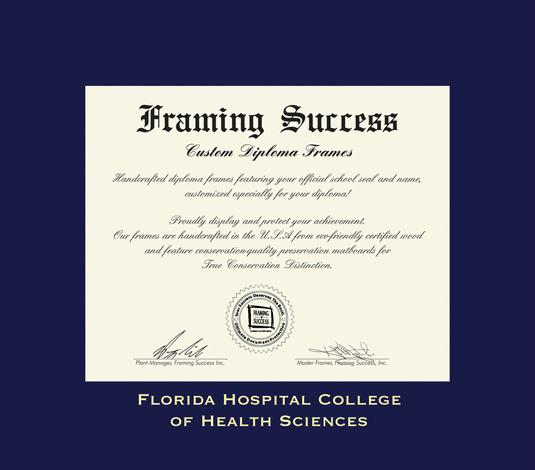 Florida Hospital College of Health Sciences Diploma Frame with Navy Blue Mat and Gold Embossing
