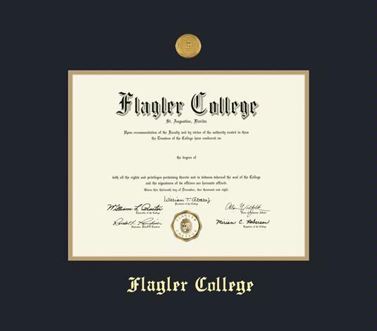 Flagler College Diploma - BA with Medallion Frame Featuring a Black and Gold Double Mat with Gold Embossing