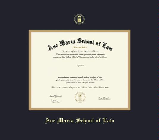 Ave Maria School of Law Diploma (Pre 6/24) Frame with Black and Gold Double Mat and Gold Embossing
