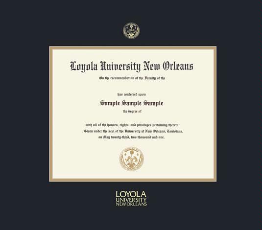 Loyola University New Orleans Diploma - Law Frame with Black and Gold Double Mat and Gold Embossing