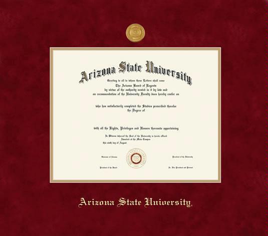 Arizona State University Diploma - Doctoral/MA of Law with Medallion Frame Featuring a Maroon Suede and Gold Double Mat with Gold Embossing