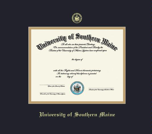 University of Southern Maine Diploma Frame with Black and Gold Double Mat and Gold Embossing